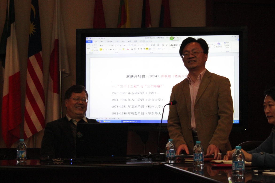 4月9日下午三点,著名语言学家邵敬敏先生应邀为我院教师学术沙龙作专题讲座“国际汉语疑问句教学专题研究”。邵敬敏教授首先谈了自己的人生经历和治学过程中获取的心得体会,然后从“疑问句”本体研究出发,提出作为教学专题,“疑问句”研究在汉语国际教育中具有典型性示范意义,它包括三个有机构成部分:
