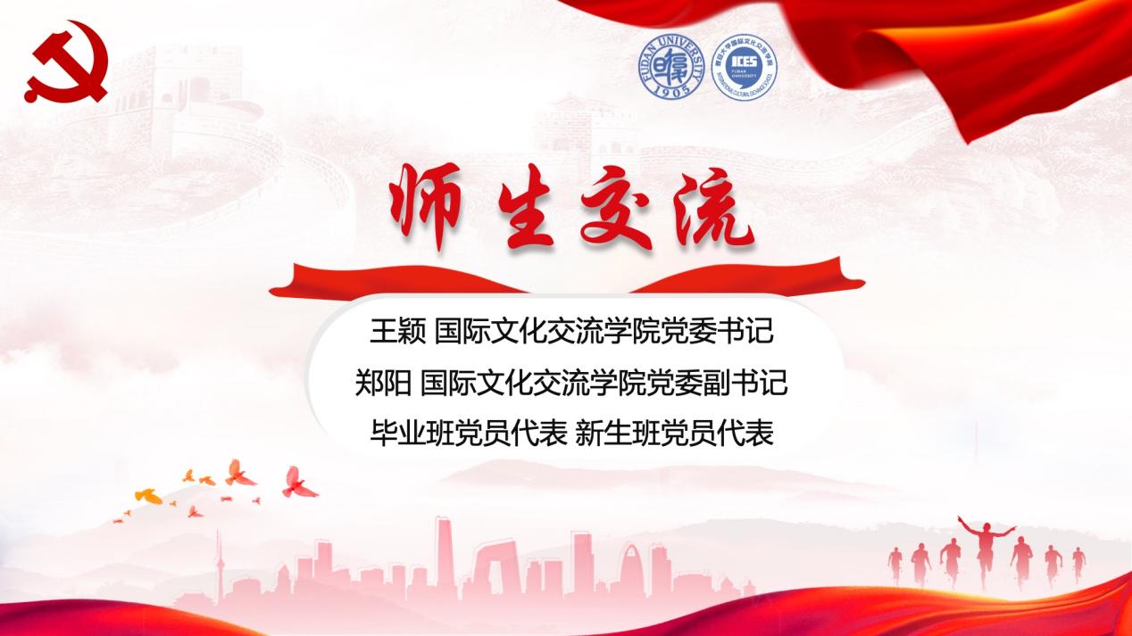 六月,是一群年轻人怀着希望和勇气远行的季节。在2022届毕业生踏上新征程之际,为寄予学院嘱托,传递复旦精神,实现交流共勉,6月15日下午,国际文化交流学院于线上开展“交相勉 前程远 向前进”主题毕业生离校党课活动,学院党委书记王颖主讲,党委副书记郑阳主持。院学工办主任李洁和学院31名研究生党员参与活动。