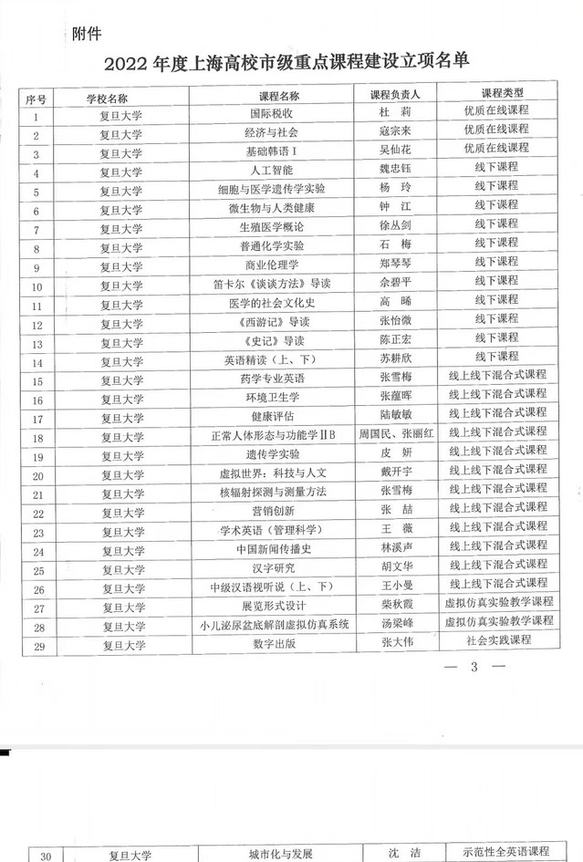 近日,上海市教委公布了2022年度上海高校市级重点课程建设立项名单,复旦大学有30门课程获得立项,其中,我院胡文华团队的“汉字研究”和王小曼团队的“中级汉语视听说(上、下)”获得线上线下混合式课程建设立项,建设周期为2年。两位课程负责人表示,将对标建设要求,高质量地完成建设目标和任务。